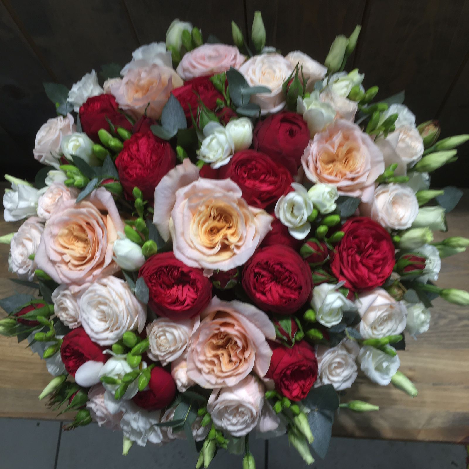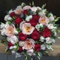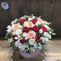 Композиция с пионовидными розами в яркой гамме